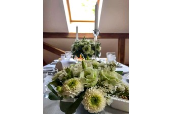 Tāds skaistums mūsu viesu kāzu jubilejai top, kad ir gatavi sadarbībai labākie no labākajiem Rojā - ziedu veikals un Alda Vecbērza, zivju veikaliņš un Anda Maslobojeva, grezno kūku cepēja Ilona Klāviņa un restorāna OTRA PUSE komanda ar saimnieci Zane Vaivode. Sadarbībā ir spēks!