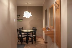- Ēdamgalds, krēsli, elektriskais kamīns